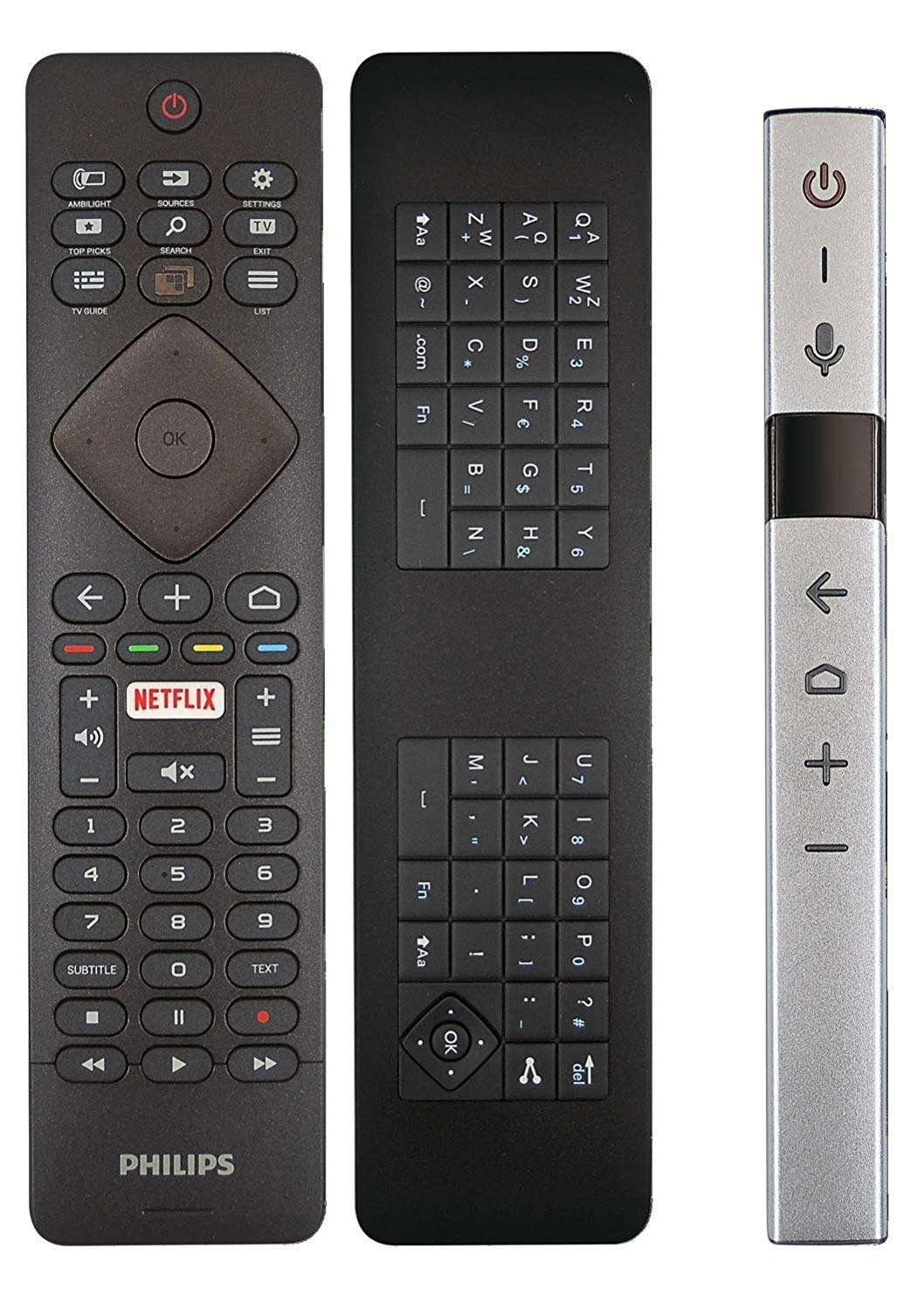 Philips-Fernseher, auch die OLED-Modelle, kommen oft mit einer Fernbedienung samt rückseitiger Tastatur. (Bildquelle: amazon.de)