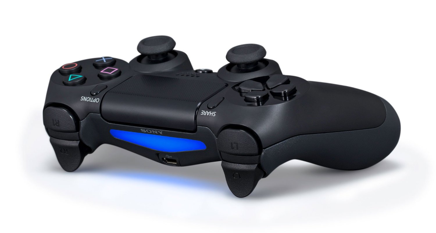 Der Controller der PlayStation wurde komplett überarbeitet. Er besitzt nun ein mittig sitzendes Touchpad, das neuartige Eingabemethoden erlauben soll - beispielsweise das Scrollen durch Karten via Wischbefehl. Eine Erfassungsfläche an der Front dient zudem der Zusammenarbeit mit der optional erhältlichen EyeCam - sie kann dank zweier Kameralinsen die Position des Controllers genau bestimmen. Das anfangs sehr ungeliebte grelle Licht kann mittlerweile gedimmt werden, sodass der Controller sich nicht ständig im Fernseher spiegelt. Eine weitere Änderung ist die Zusammenfassung von „Select“ und „Start“ in einer Optionstaste.Fernzugriff, Online-Sharing und Rückwärtskompatibilität