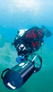 Ein Scooter ist ein Gerät, das dazu verwendet wird, um einem Taucher mühelose Fortbewegung unter Wasser zu ermöglichen. Es handelt sich dabei um ein Vehikel mit Propeller, dass von einem Elektromotor betrieben wird. Der Taucher hält sich an Griffen fest und wird dann gezogen. Ein Vorteil daran ist, neben der schnellen Fortbewegung, der nahezu geräuschlose Motor. So wird die Tierwelt im Wasser nicht gestört und der Scooter kann sogar in Schutzgebieten verwendet werden. Ein Scooter eignet sich zudem für Taucher, die sehr tief tauchen. Im Gegensatz zu einem Gerät mit einem Verbrennungsmotor kann der Scooter nämlich in tiefere Gegenden vordringen. Die Maximaltiefe hängt lediglich von der Druckfestigkeit des Gehäuses ab. Wer also sehr tief tauchen möchte, muss wohl etwas mehr Geld ausgeben. Zielgruppe von Scootern sind vor allem professionelle und fortgeschrittene Taucher, die auf Entdeckungsreise in Höhlen oder Wracks gehen. Ein Tauchscooter wird auch als DPV (Diver Propulsion Vehicle) bezeichnet.