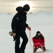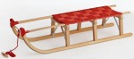 Das erste historisch belegte Schlittenrennen fand 1883 im schweizerischen Davos statt – daher der Name dieses Holzschlittens. Der Aufbau eines solchen Schlittens ist denkbar einfach: Stabile Holzlatten liegen auf einer robusten Konstruktion, die durch, mit eisenbeschlagenen Kufen, auf dem Schnee gleitet. Damit man den Schlitten hinter sich herziehen kann, ist am vorderen Ende ein Zugeisen mit einer Leine angebracht. Das Zugeisen verbindet die beiden Kufen miteinander und gibt zusätzlichen Halt. Die Davoser Schlitten werden in verschiedenen Größen angefertigt. Meist haben sie eine Länge von 80 bis 130 Zentimetern. Der schlitten lässt sich gut von einem Piloten alleine fahren - aber auch zwei oder sogar drei Personen finden auf den längeren Gefährten Platz. Durch die aufrechtere Sitzposition und das etwas langsamere Tempo, im Vergleich zu anderen Schlittenarten, sind sie optimal für Kinder und Familien geeignet. Meist werden edle Harthölzer für die Verarbeitung der Davoser Schlitten verwendet, etwas erschwinglichere Modelle sind auch schon einmal aus Buche. Man sollte daher vor dem Erwerb eines solchen Holzbobs immer auf die Maximalgewichtsbelastung achten, damit man nachher nicht auf einem zerbrochenen Lattenberg sitzt. Einige hochwertigere Modelle sind zusätzlich mit Metallstreben verstärkt. Durch die Verwendung beider Materialien (Holz und Metall) ergeben sich neue Konstruktionsmöglichkeiten, so bieten einige Hersteller zum Beispiel mittlerweile Klappschlitten an. Diese eignen sich hervorragend für den Transport, da sie nur wenig Platz im Kofferraum benötigen.