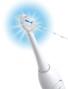 Die Düse einer Munddusche führt von Zahn zu Zahn – ähnlich wie der Kopf einer rotierenden E-Zahnbürste. (Bildquelle: philips.de)